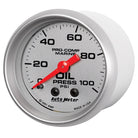 Autometer Marine Silver Oil Pressure 2 1/16in 100 psi Mechanical Gauge