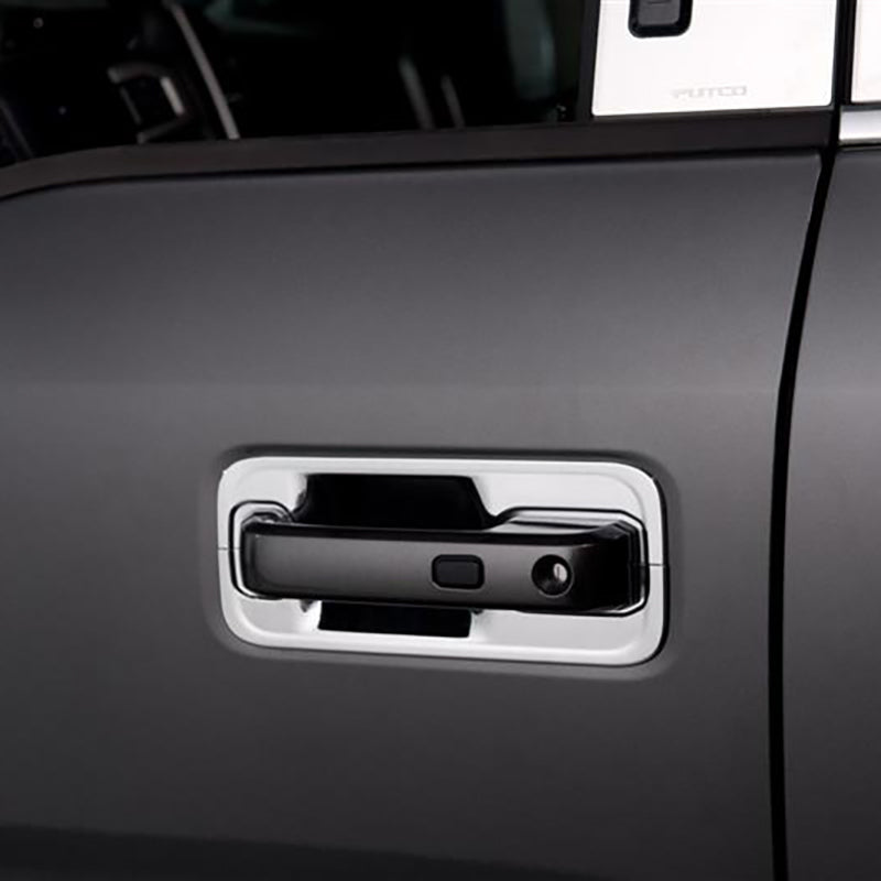 Give your vehicle an upgrade with Putco's Chrome Door Handle Covers. Our covers are designed to fit your year, make, and model perfectly. You can choose between upgrading your door handles, your buckets or both with our deluxe chrome package. These covers are constructed out of heavy-duty ABS chrome and match perfectly with the rest of your OEM chrome. Install is made quick and easy with pre applied 3M tape.