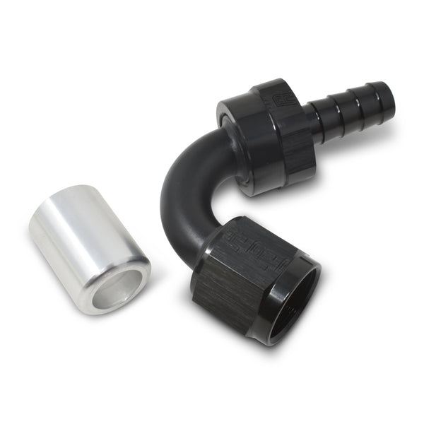 ProClassic Crimp-On hose ends make custom hose fabrication easy. Simply cut the hose, push together the hose and fitting and crimp! Their lightweight collar design is engineered by size for precise compression ensuring proper end attachment with Russell manual crimper and appropriate crimper die. Replacement collars are available in the event you want to re-use the hose end on a different assembly. They are available in -4 through -12 sizes and are packaged complete with collar. Crimper and dies sold separately.