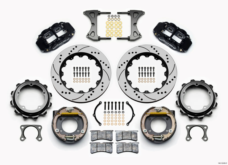 Wilwood Narrow Superlite 4R Rear P-Brk Kit 14.00in Drilled Strange Eng Floater 3.49in Offset